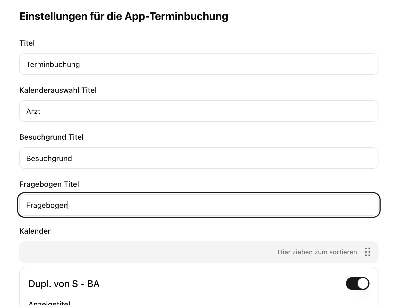 - Terminbuchung: Online-Terminbuchung mit Kalenderauswahl und Fragebogen