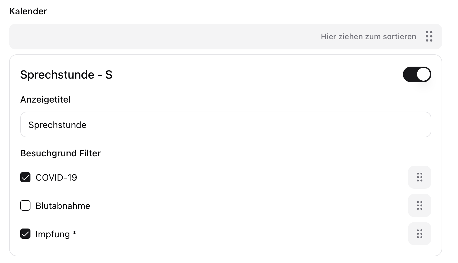 - Neue Konfiguration der Platzhalter für die Terminbuchung aus vitalyze wird übernommen und angezeigt.